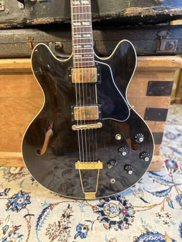 This stunning Gibson ES-345TD is from 1973, it’s all original apart from its case. It’s finished in dark walnut and in the right light almost looks black….