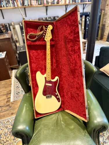 This one is a very cool guitar with some really quirky history! It’s a 1958 Fender MusicMaster with original case. It was Fender factory re-finished in the…