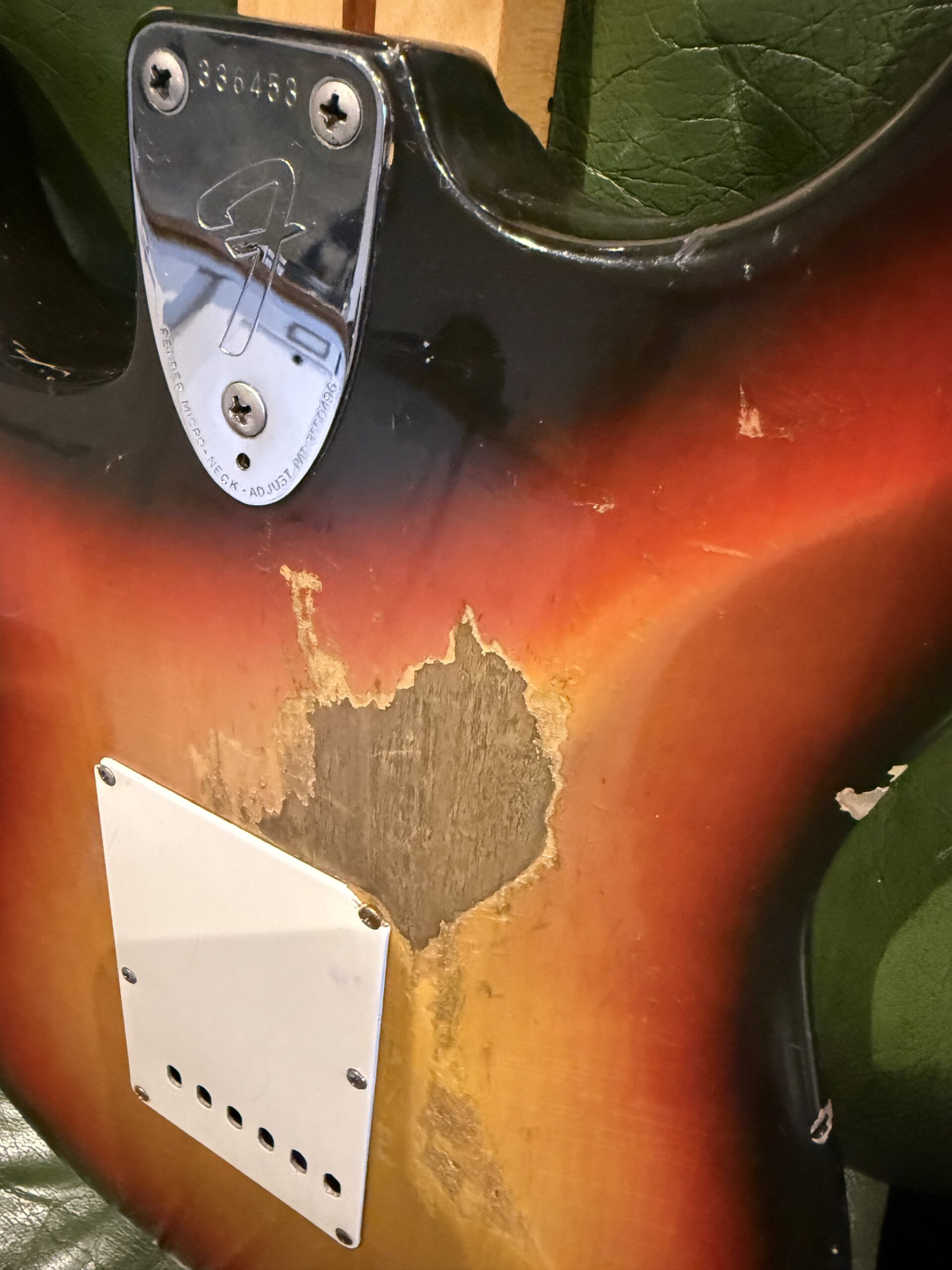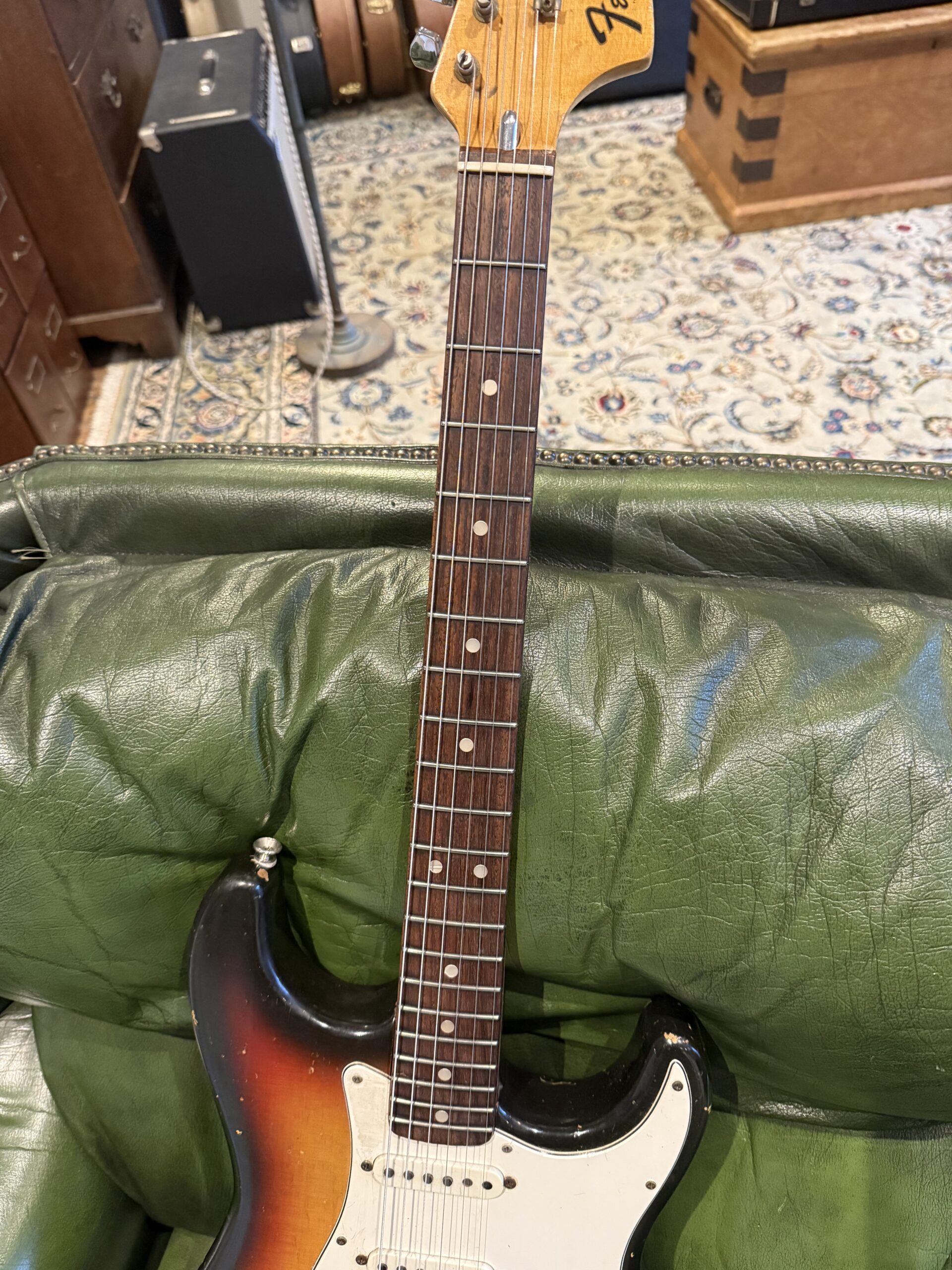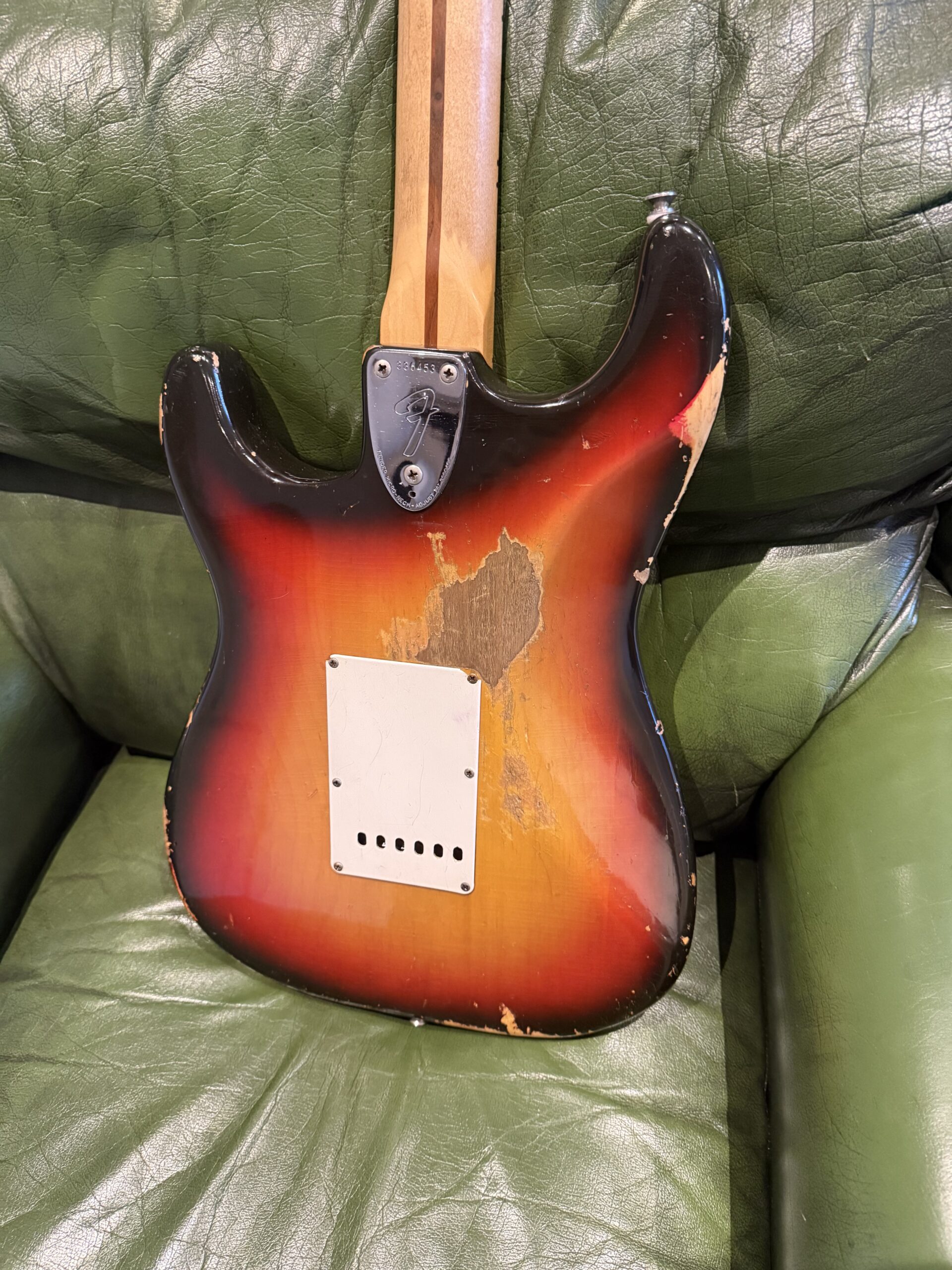 Great early 70s Strat, set up and ready to rock! It’s had 1974 pots added and a 5 way but all else seems stock, very rare to get the single string tree surviving on these 70s strats! This one plays unbelievably well! Great neck!